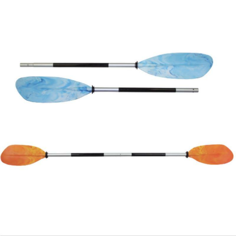 Experience ultimate control and efficiency on the water with our Double Blade Kayak Paddles. Crafted with an anodised aluminium shaft and vibrant mixed colour asymmetrical blades, these paddles offer both style and functionality. The innovative design allows for easy separation into two pieces, secured by a locking collar with a 3-button adjustment feature for blade offset. Perfect for both right and left-handed paddlers, these paddles also feature hand grips and drip guards for a comfortable and dry paddling experience. With a total length of 2.2 metres (7.25 ft), these paddles are the perfect companion for your next kayaking adventure.