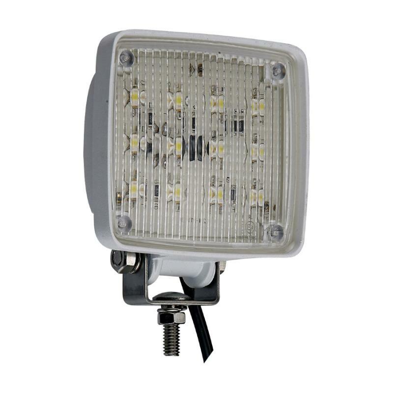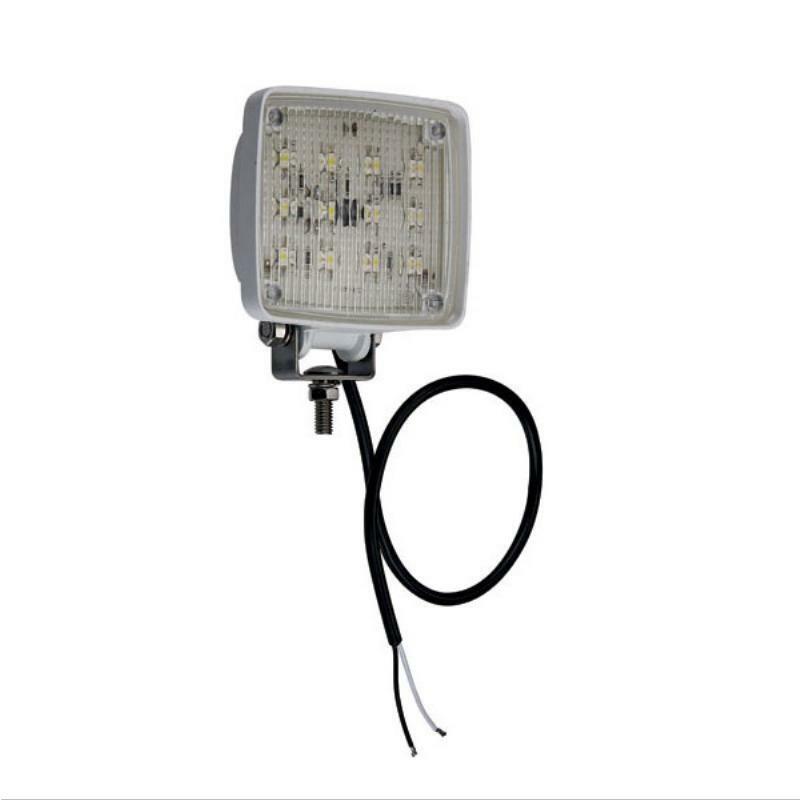 - LED floodlight with 12 extra bright diodes operating at a range between 9 to 36 volts with a low 0.4 to 1.5 amperage draw.