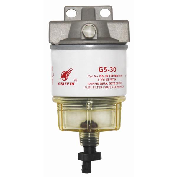 Introducing the Griffin G57A Spin-On Diesel Filter: - 99.8% water separation efficiency - Up to 10x better filtration than standard filters - High capacity MICROBLOC technology - Longer engine life & reduced fuel consumption - Base-equipped with 30 micron cartridge - Compatible with Racor Spin-on filters