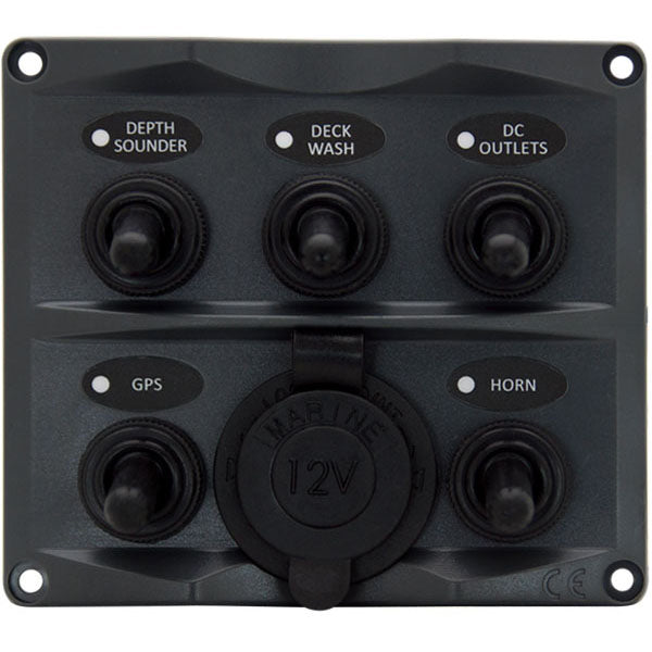 Enhance your boat's control with the RELAXN Water Resistant Switch Panel - 530715. Featuring heavy-duty metal toggle switches, water-resistant rubber boots, and LED panel indication, this panel is a must-have for your marine adventures. Enjoy easy installation with pre-wiring and included screws. Stay protected with the IP56 rating and 3 x 15A fuses. Get yours now!