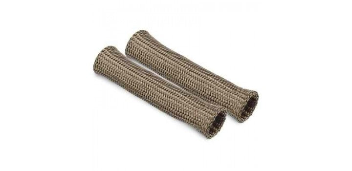 Protect-A-Boot, Plug Boot Heat Shields, Titanium, 6 inch Long, 2 pc Titanium spark plug boot protectors are the latest in thermal protection technology. Mined from lava rock, stranded and woven into a proprietary weave, Titanium boot protectors are engineered to withstand extreme temperatures up to 1800 degrees F of direct heat. - Ultimate protection for spark plug boots & wires - Strong, durable & long lasting construction - Resistant to chemicals, abrasions & other contaminants - Universal-fitting most straight or angled spark plug boots - Cool carbon fiber look